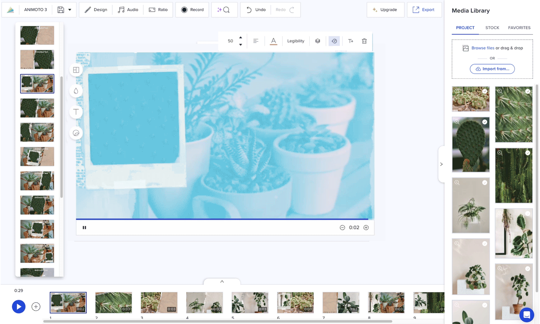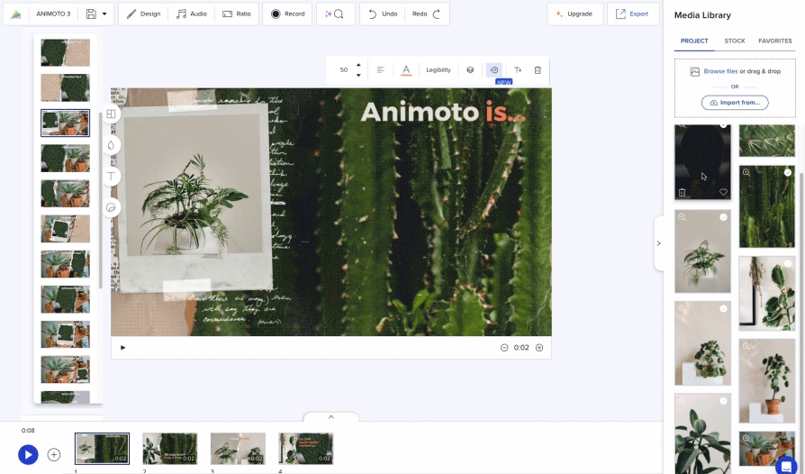 Solution: Curated Design Themes allow users to make their videos look professionally designed in the click of a button. This feature was adopted by 20% of active users and they no longer had to waste time altering templates.